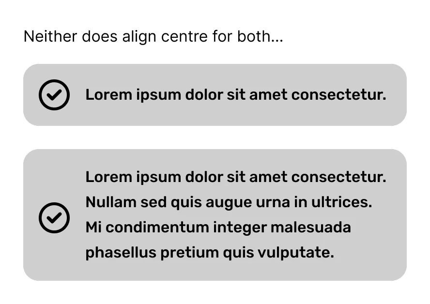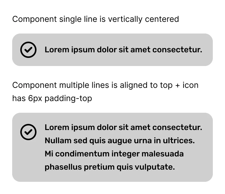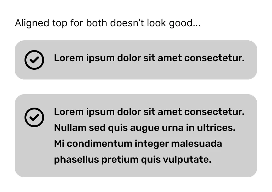 In the design (made in Figma), the version with one line of text has the items set to vertically align to the center, and the version with multiple lines has it aligned to the top. Along with that, on the multiline, the icon has a top padding of 6px to account for line heights and such.