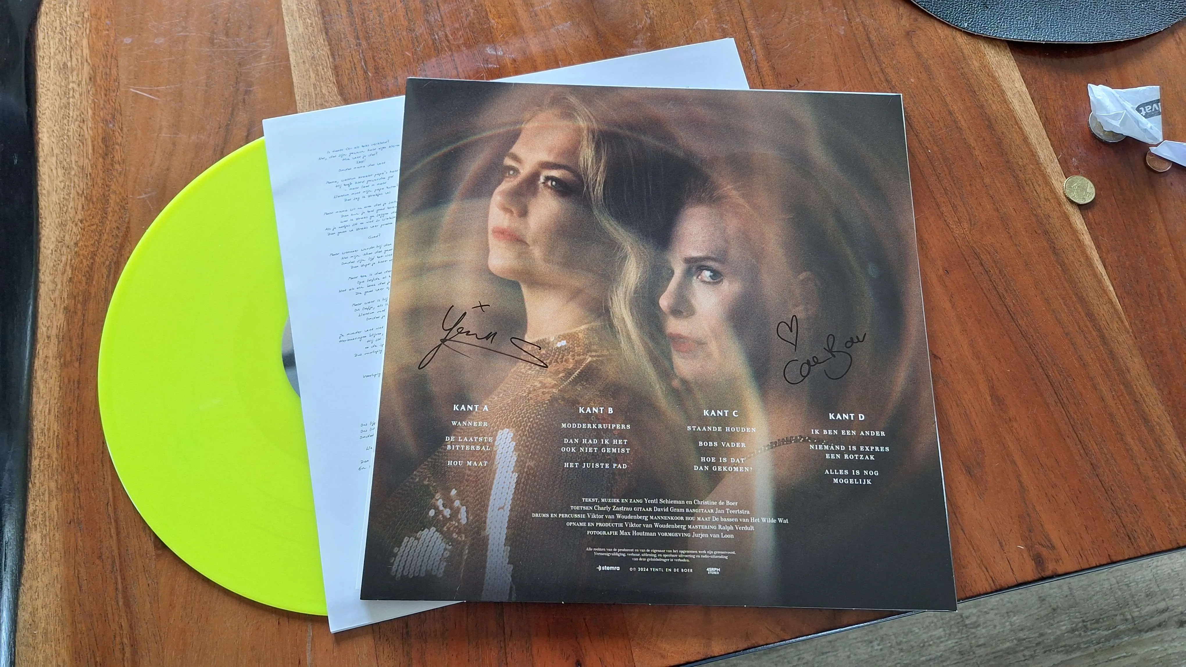 So last Saturday I want to Yentl en De Boer which was fun and unexpected. Going in I thought it would be a bunch of talking with some songs, but turns out it was actually a lot of songs with very little talking in between. They're really good singers though, and the songs were nice so I had a good time. I also got a signed vinyl from them which are VERY brightly colored. You can see one of them on the picture but there's also a neon green one.