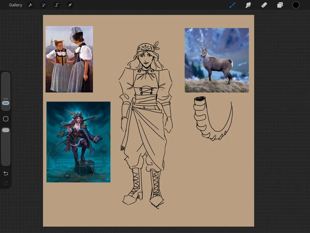 On Wednesday I went to the Drawclub where I had a really good brainstorm session about my DND character for a campaign some friends and I are going to play. I can't share too many details about the character but I do have an initial sketch to share: